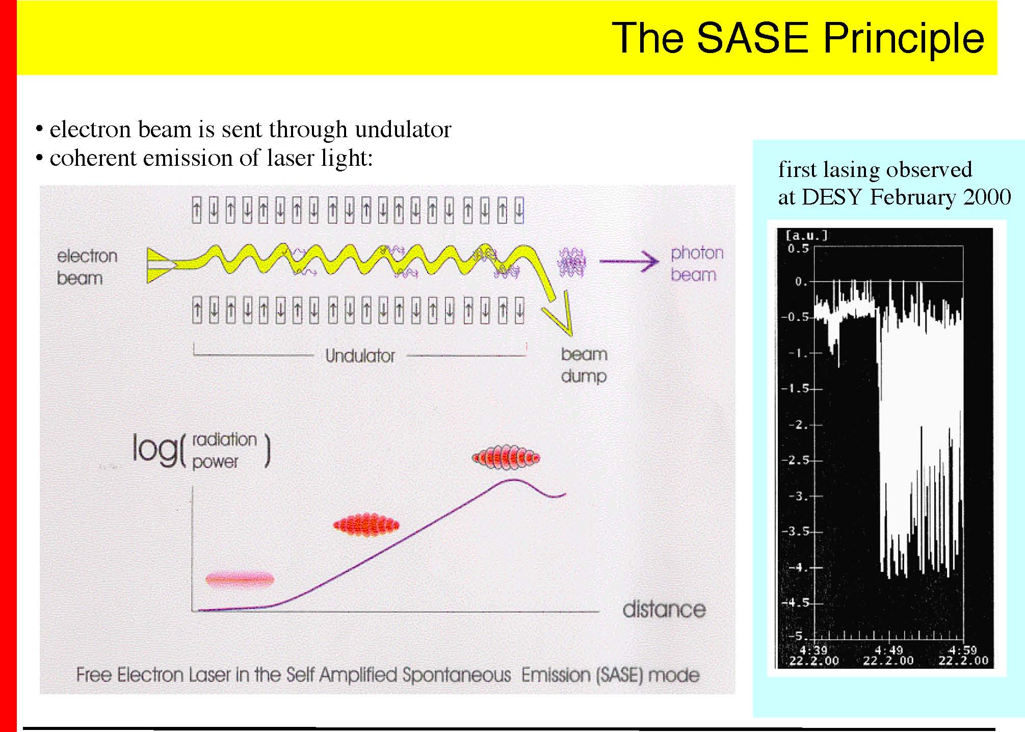 � electron beam is sent through undulator � coherent emission of laser light: