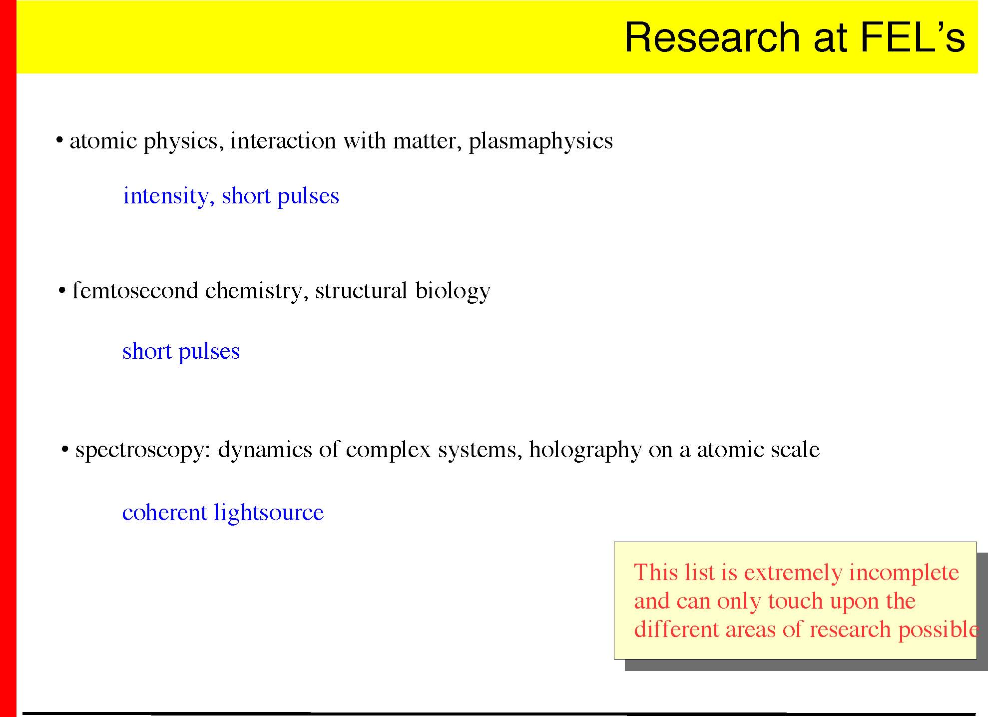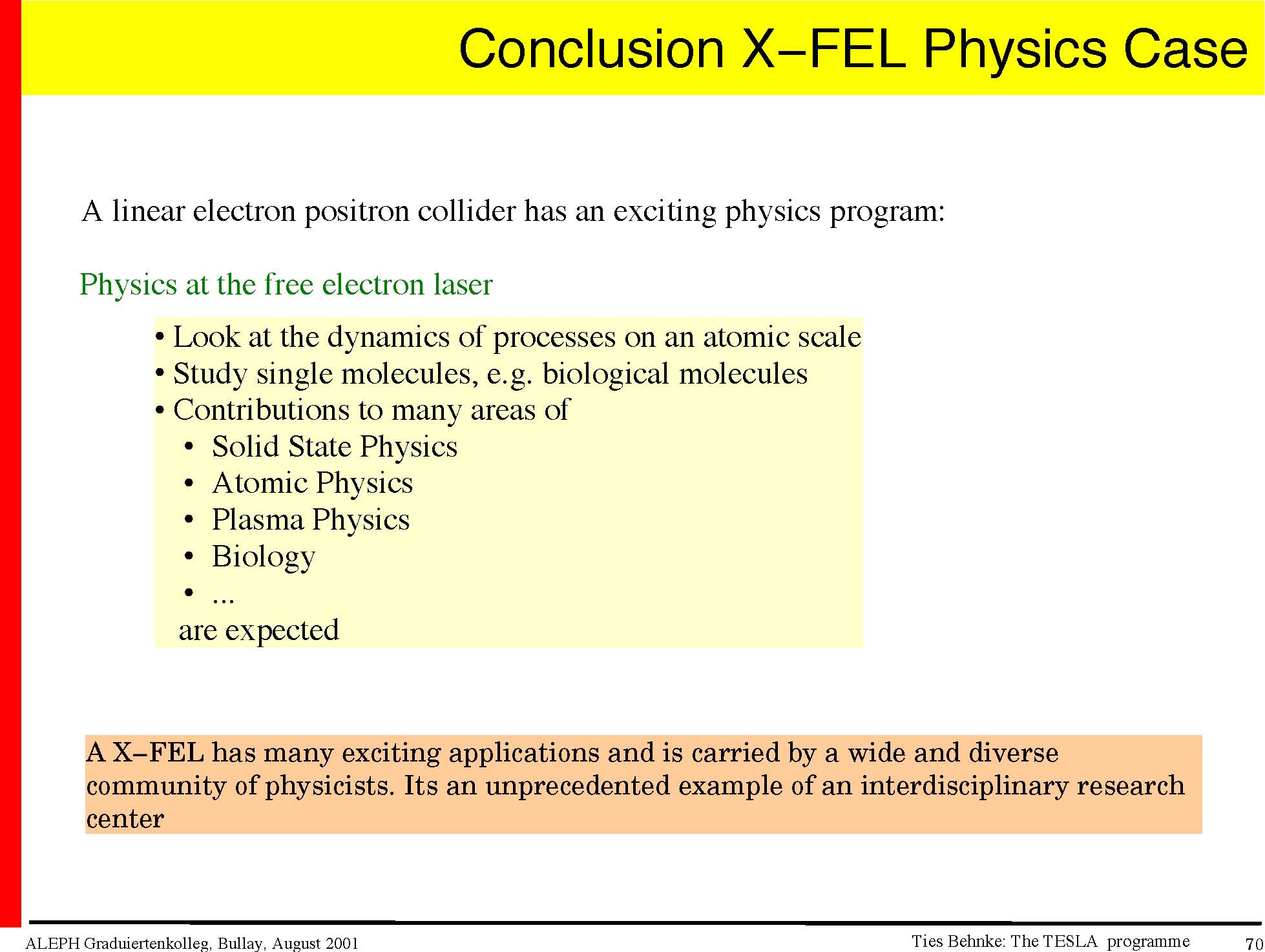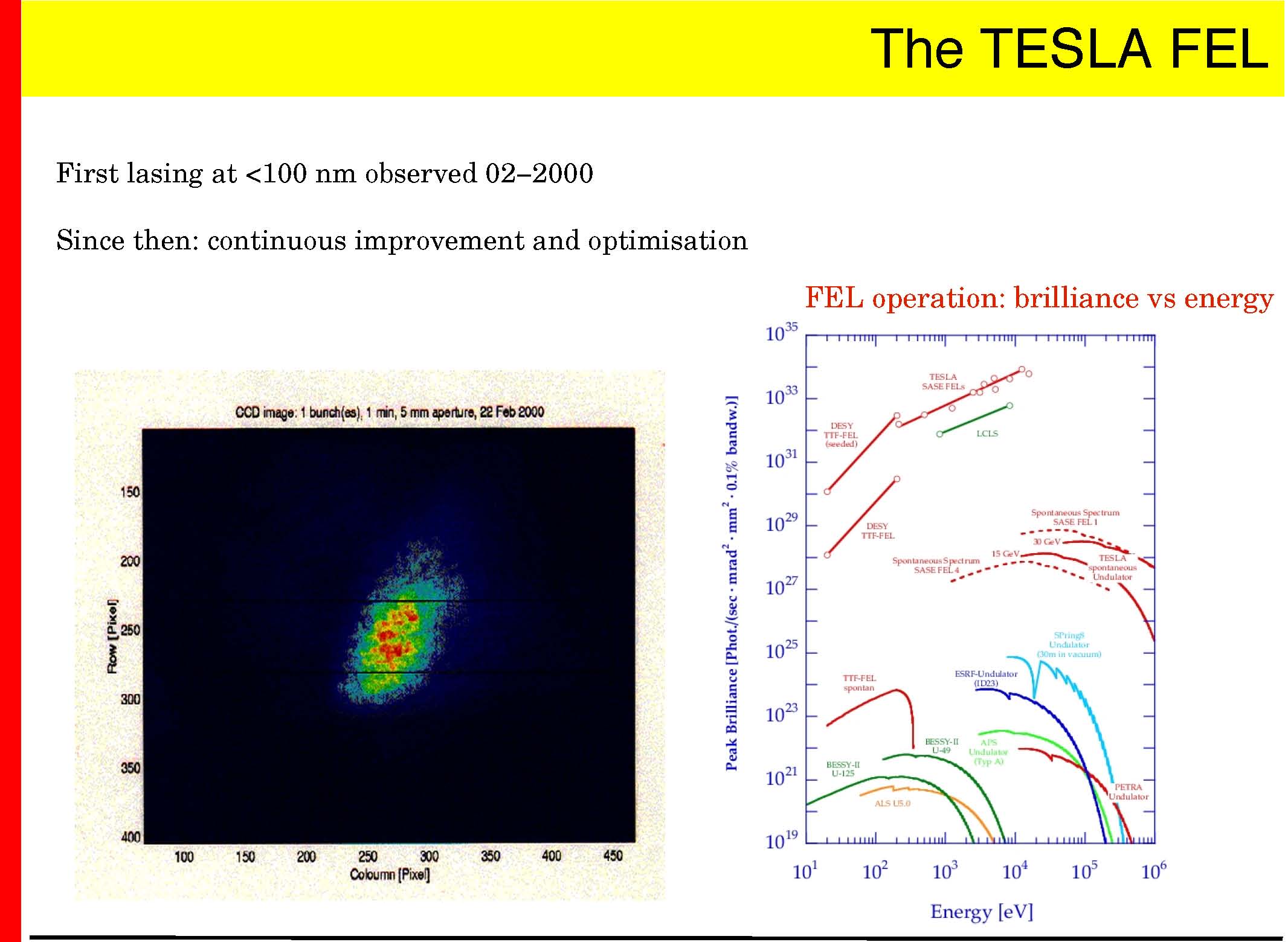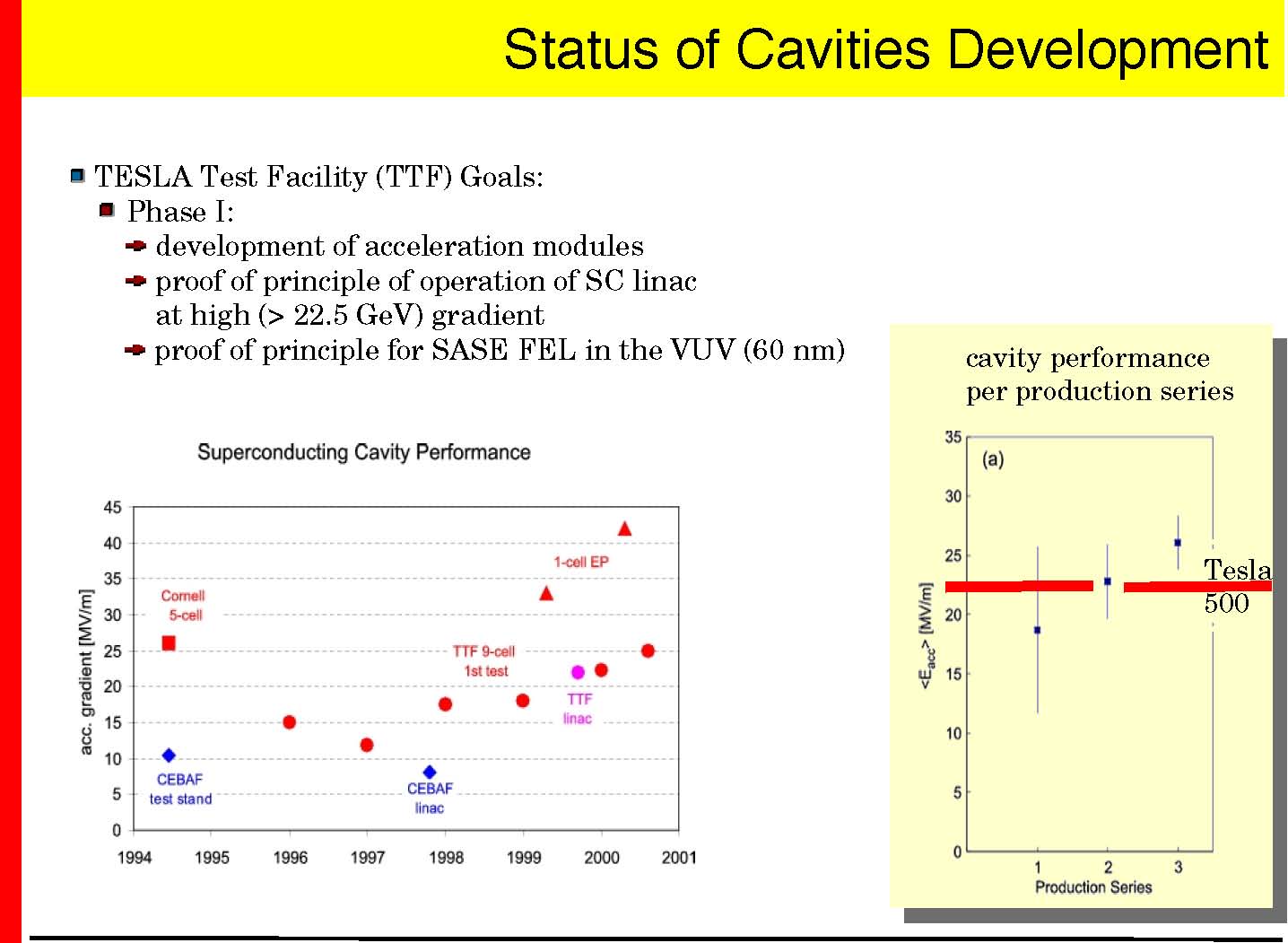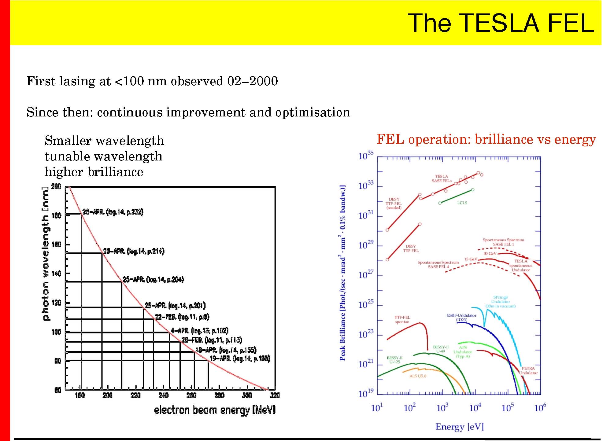 Goal: −demonstrate the superconducting technology (TTF I, done) − demonstrate the SASE principle in the <100nm range (done) −gain experience operating a superconducting linac and FEL −>2003: user facility for Roentgenlaser