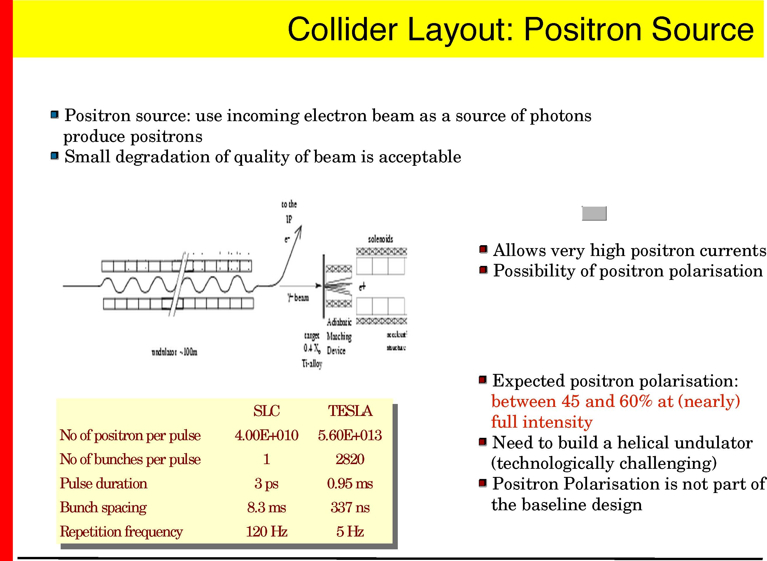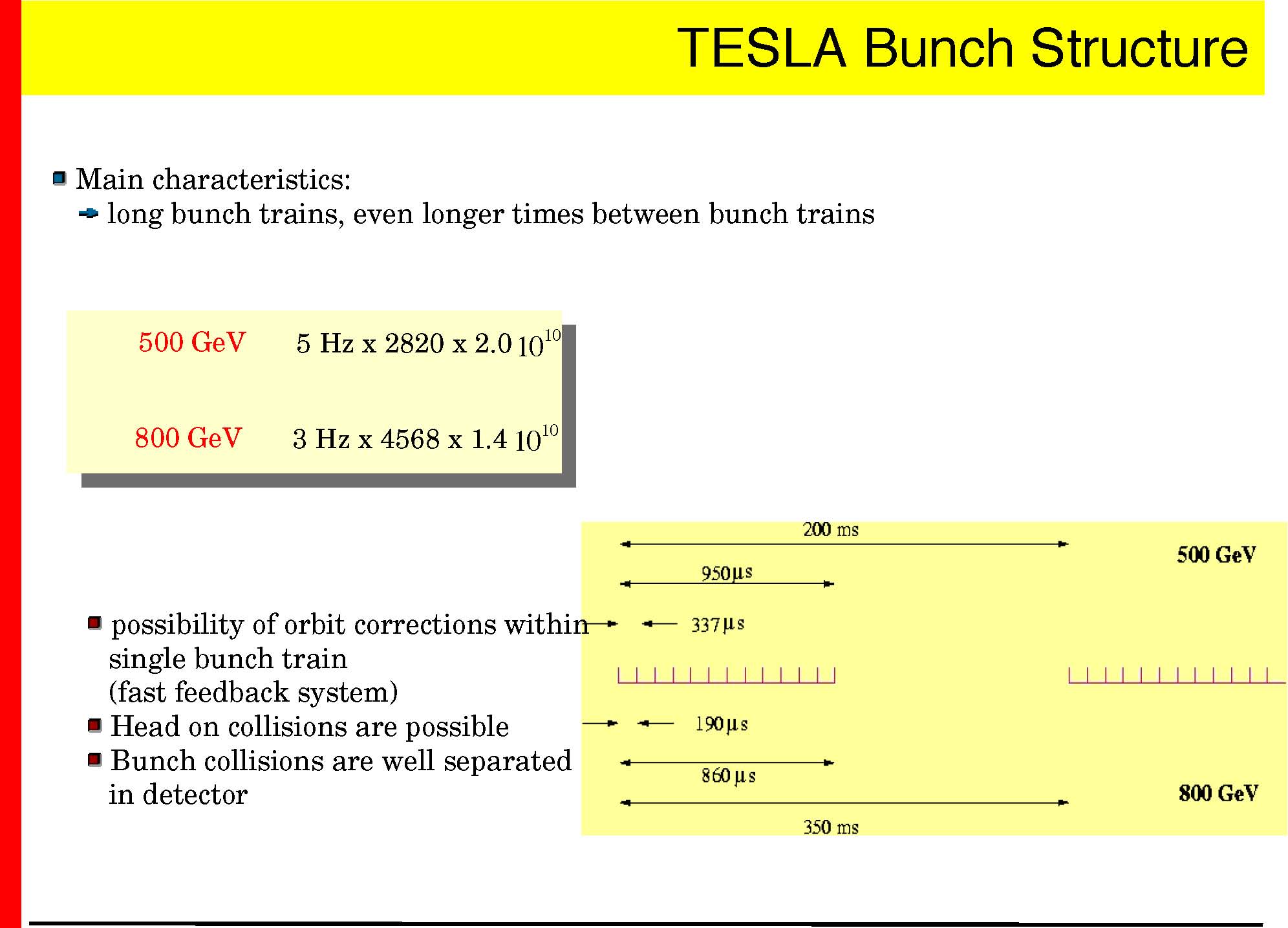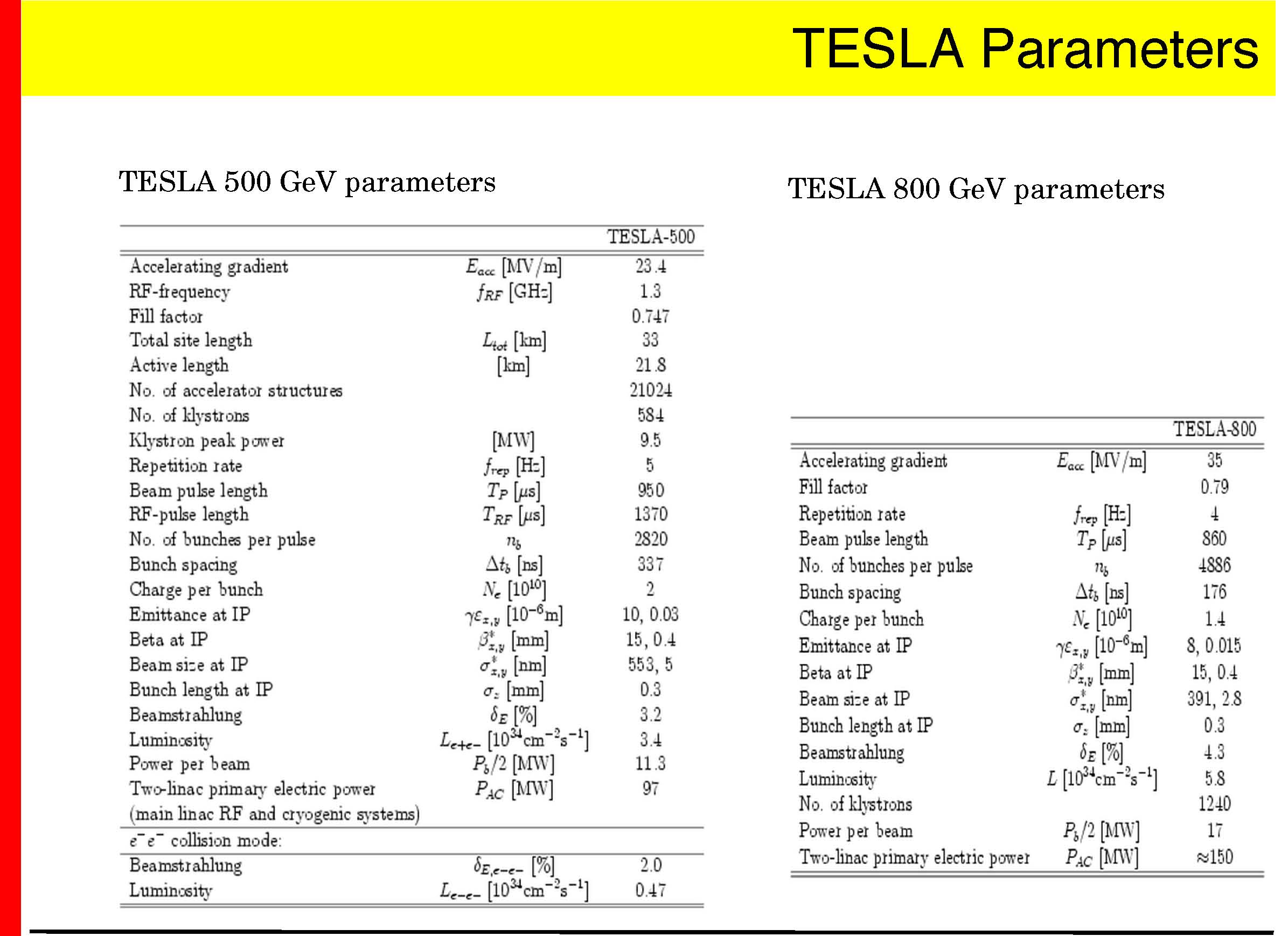 TESLA 500 GeV parameters TESLA 800 GeV parameters