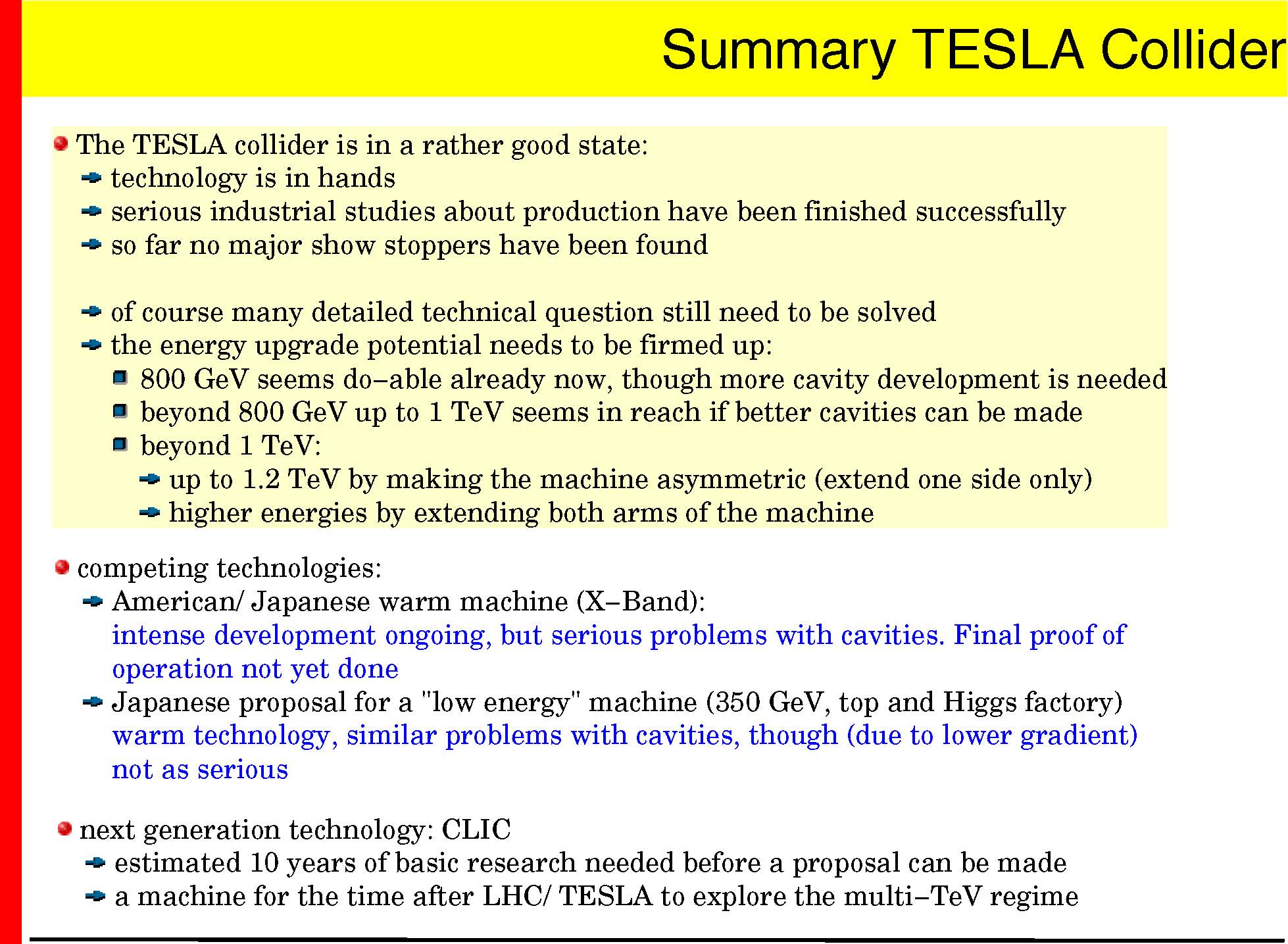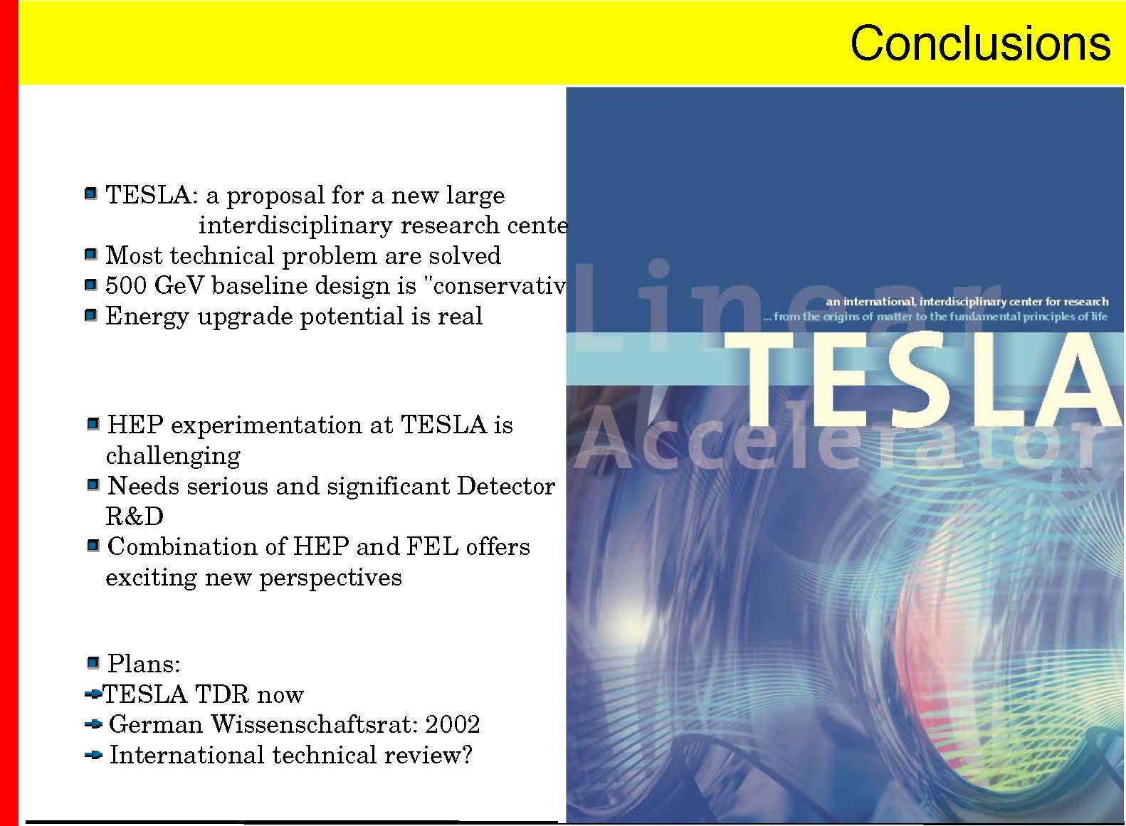 � calorimeter at E>500 GeV will be very important � TESLA concept: