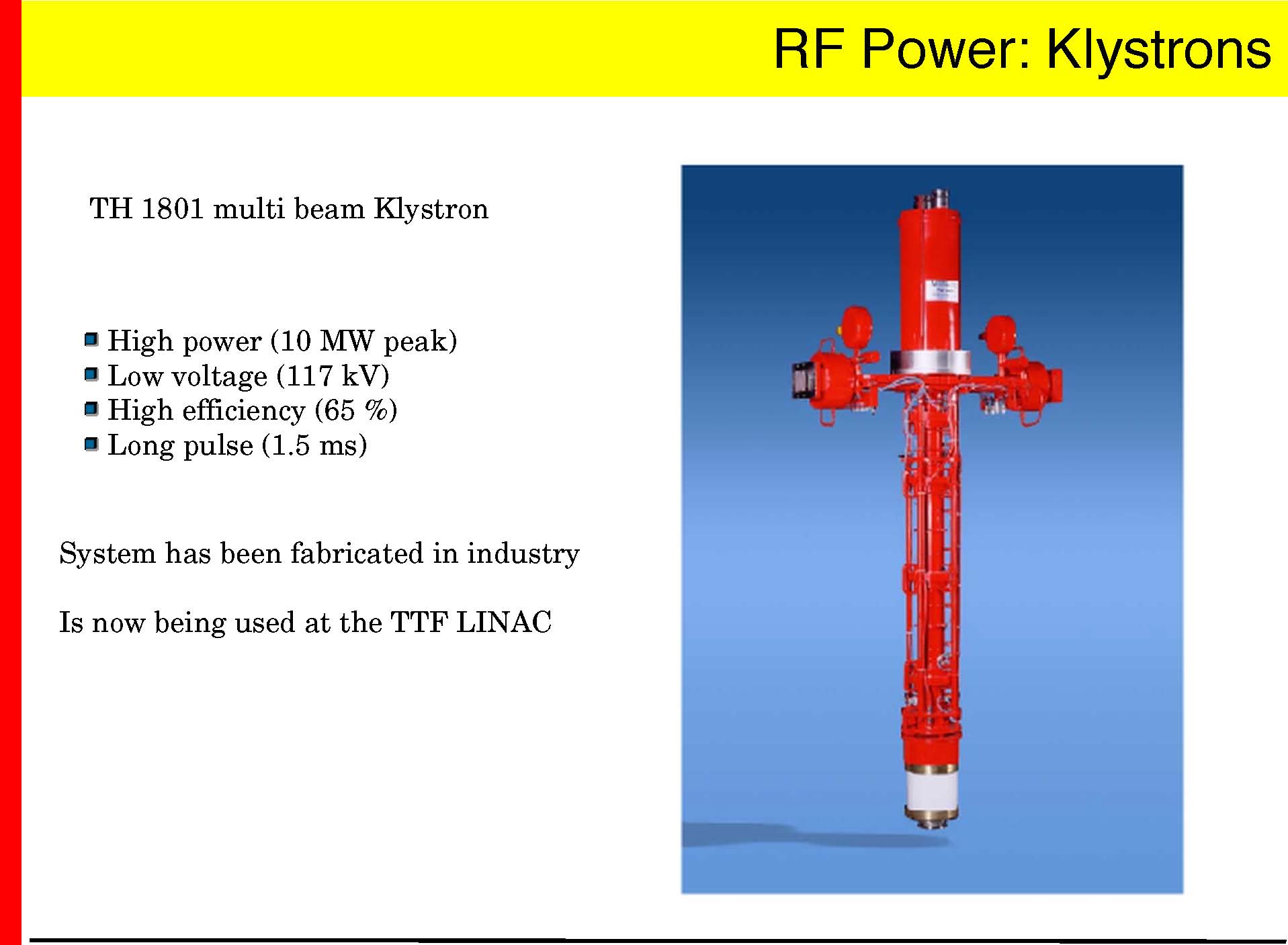 low RF peak power (200 kW/m)
