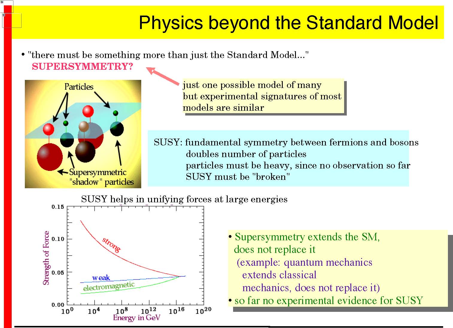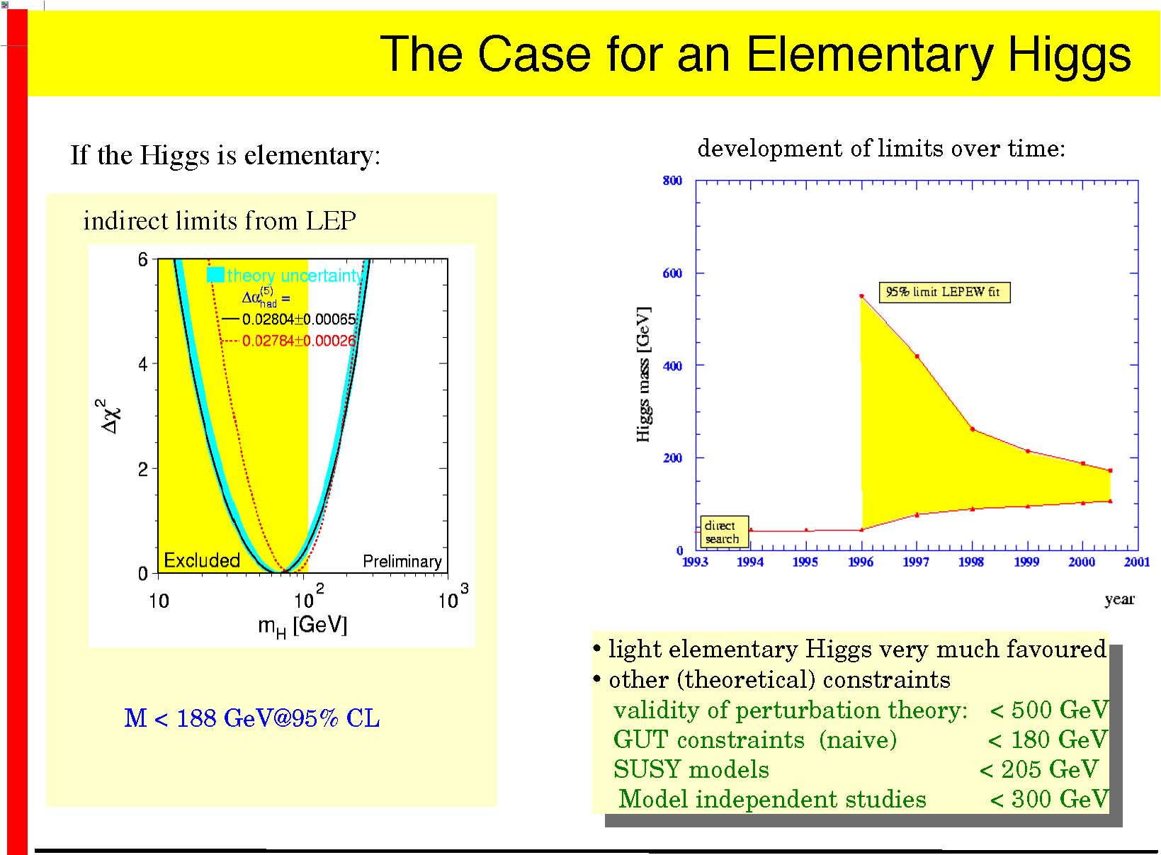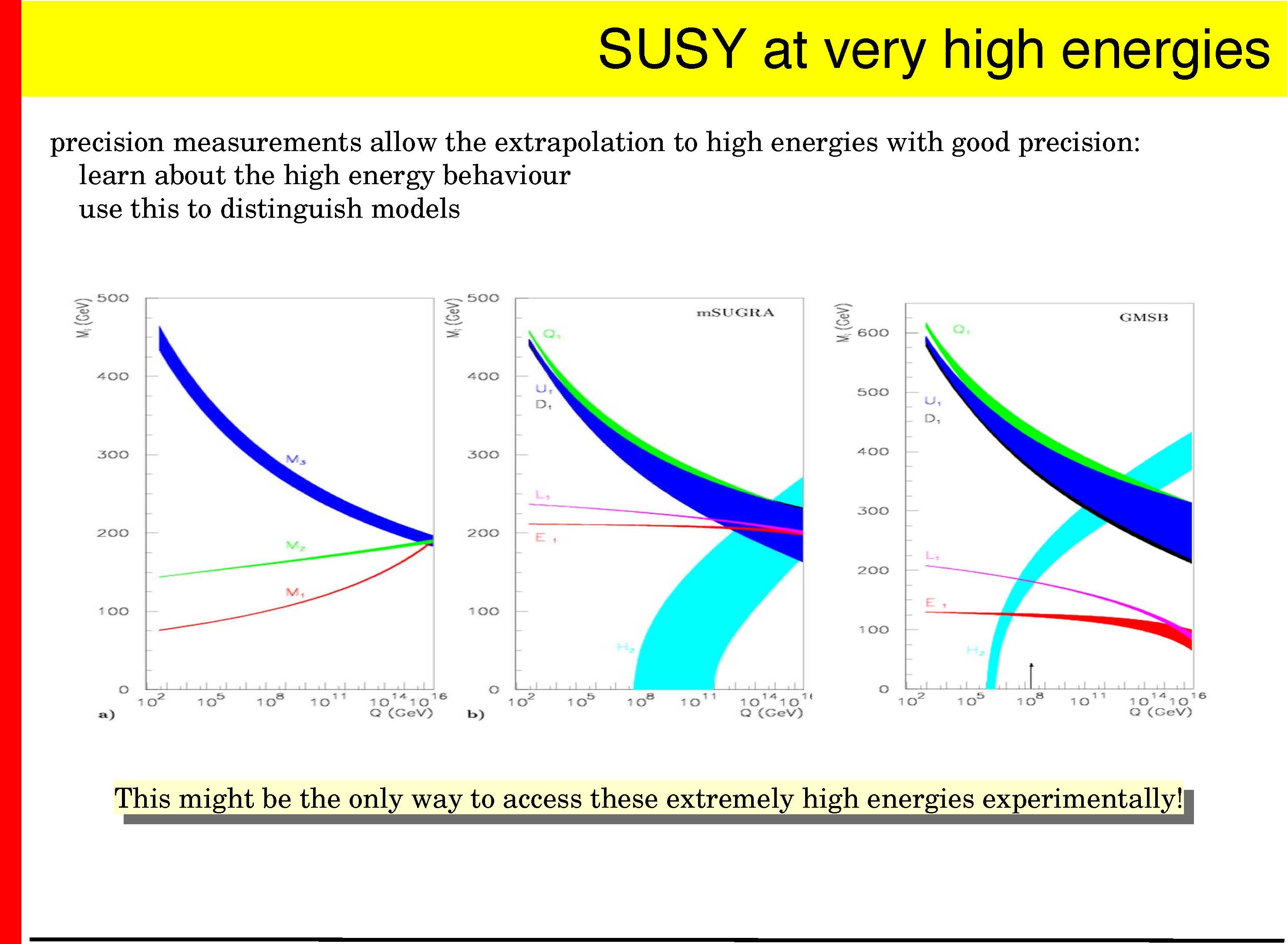 precision measurements allow the extrapolation to high energies with good precision: learn about the high energy behaviour use this to distinguish models Mass reach of LHC larger