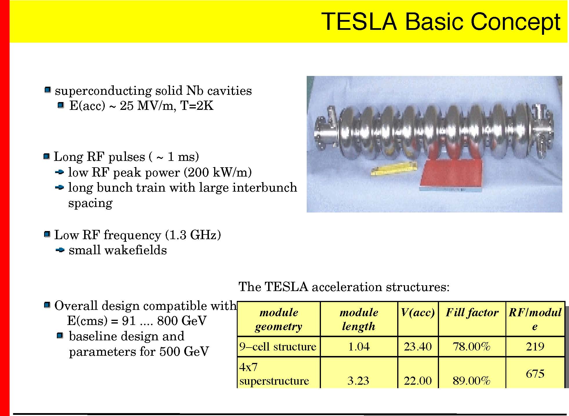 | module geometry | module length | V(acc) | Fill factor | RF/modul e |