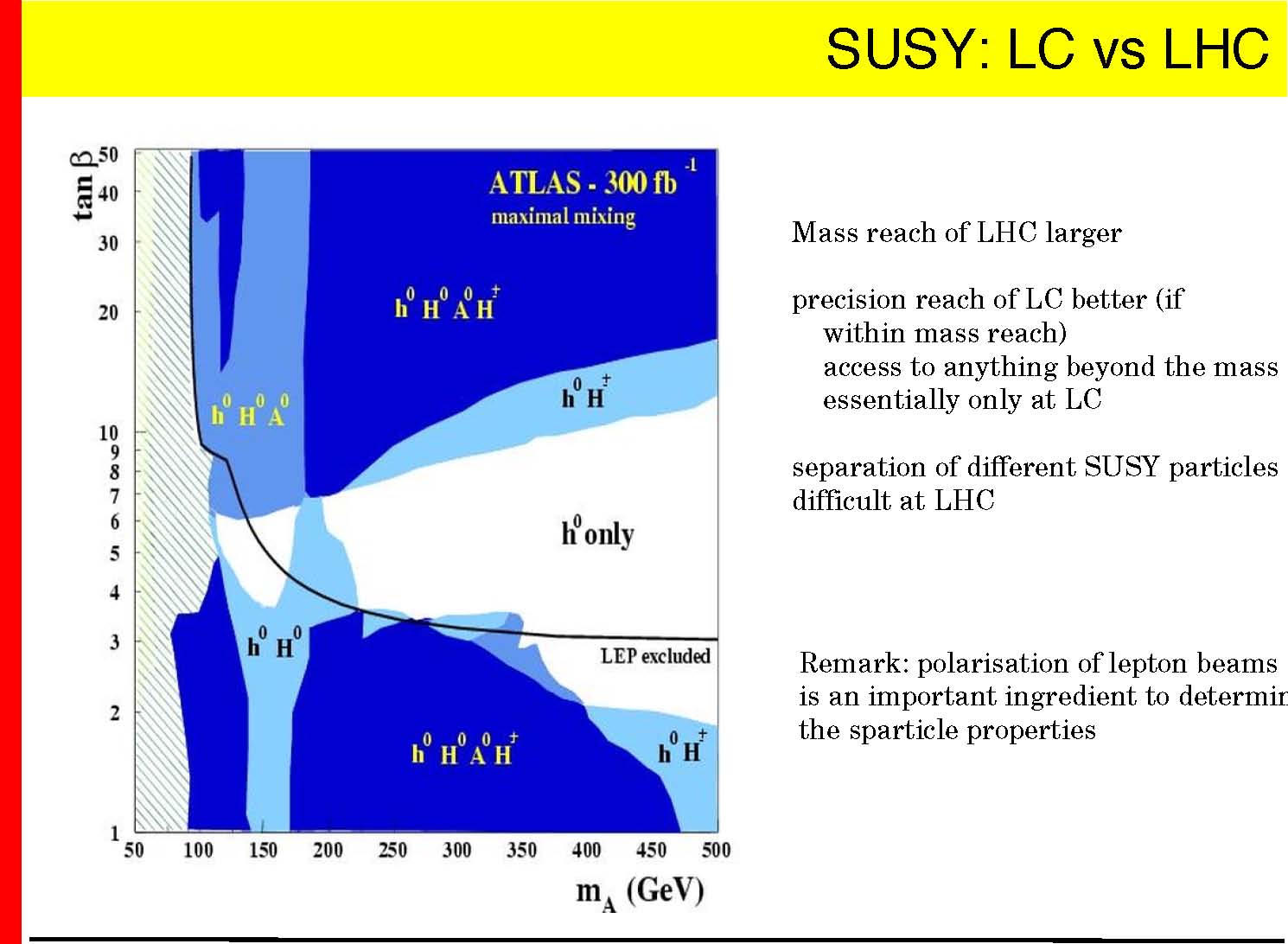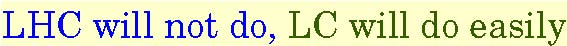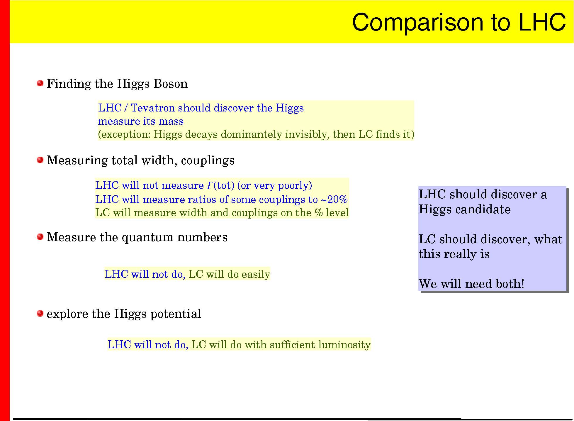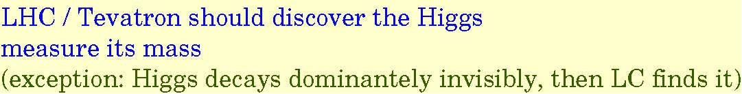 precision reach of LC better (if within mass reach) access to anything beyond the mass essentially only at LC