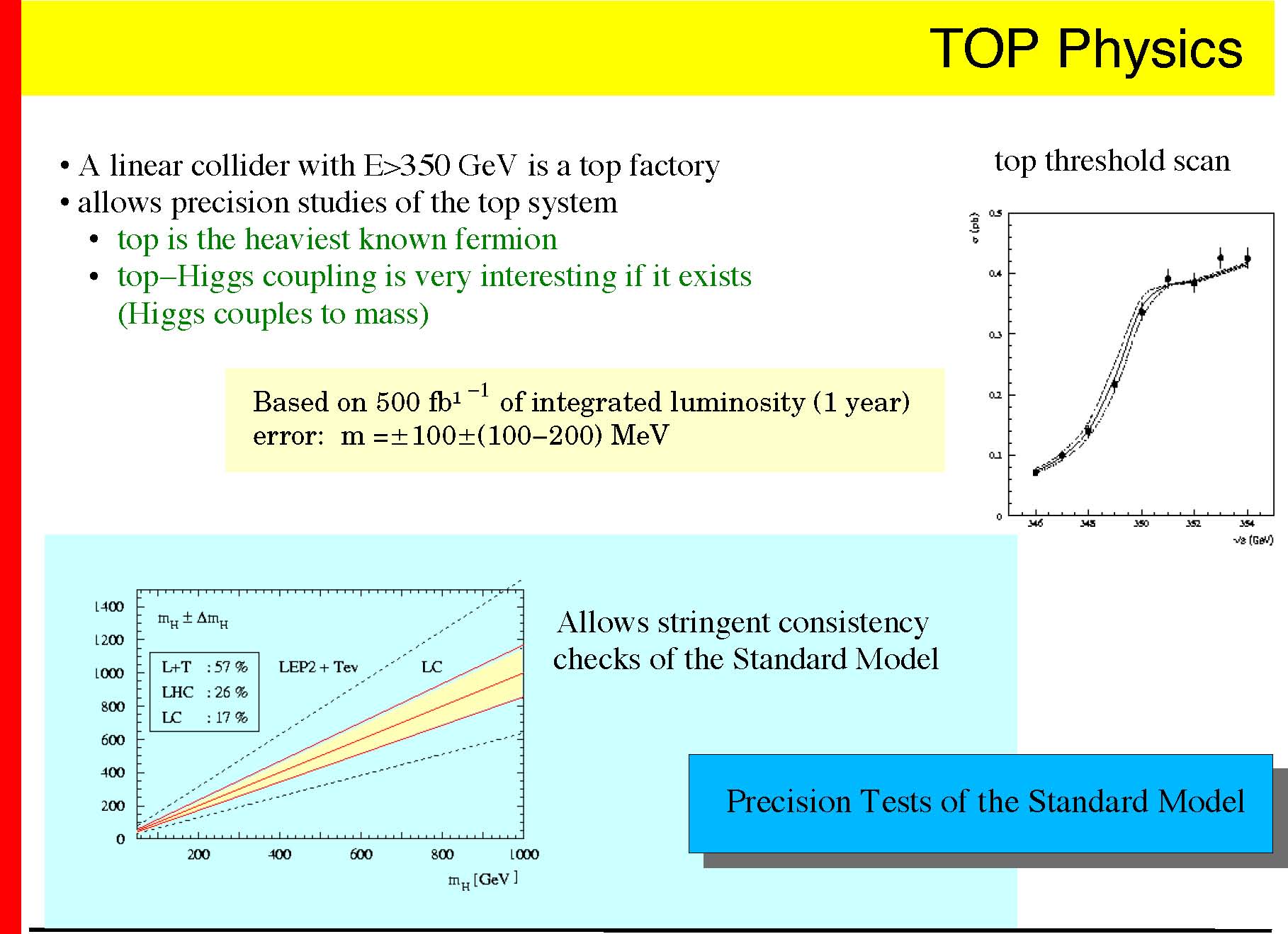 � many precision measurements to significantly extend our present knowledge � electroweak precision measurements � W mass measurement � top mass and properties � QCD physics � ....